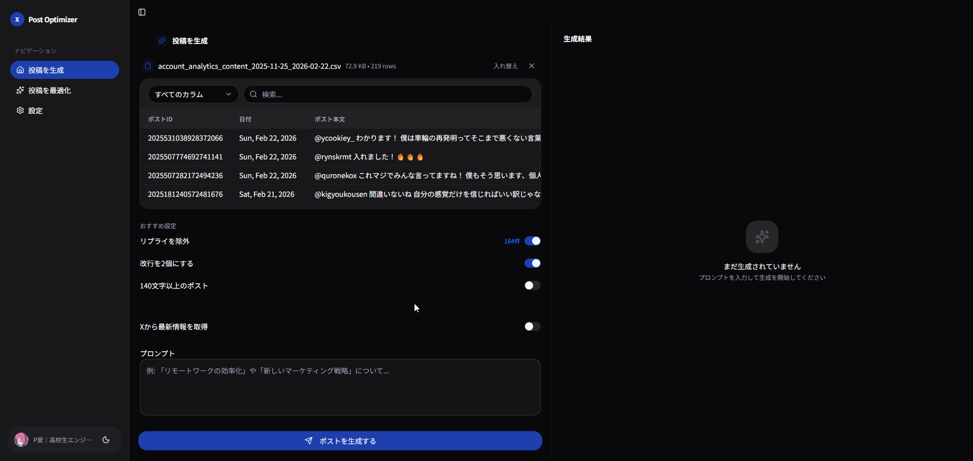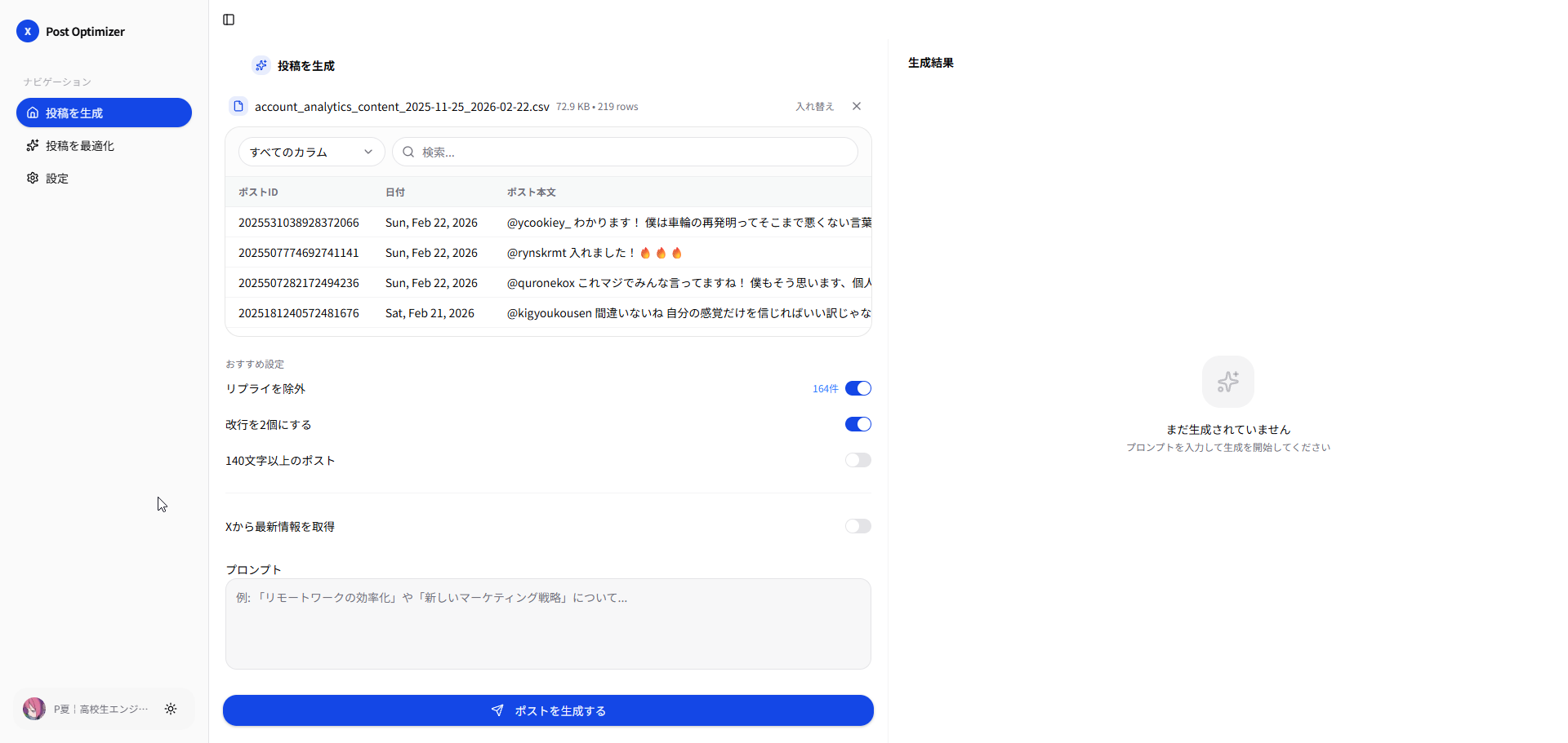 Next.js / Tailwind CSS / TypeScript / Python が主な技術スタック。